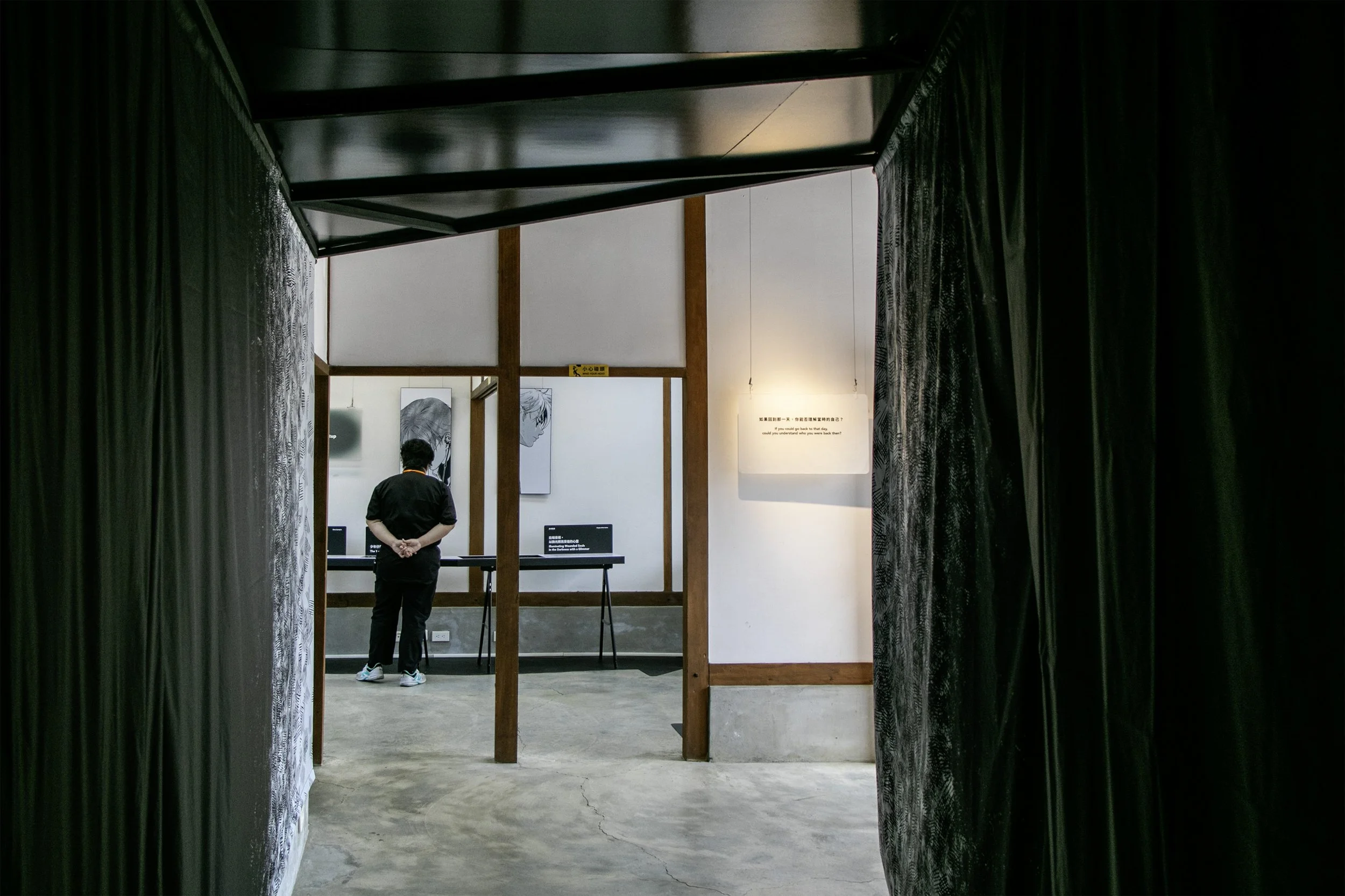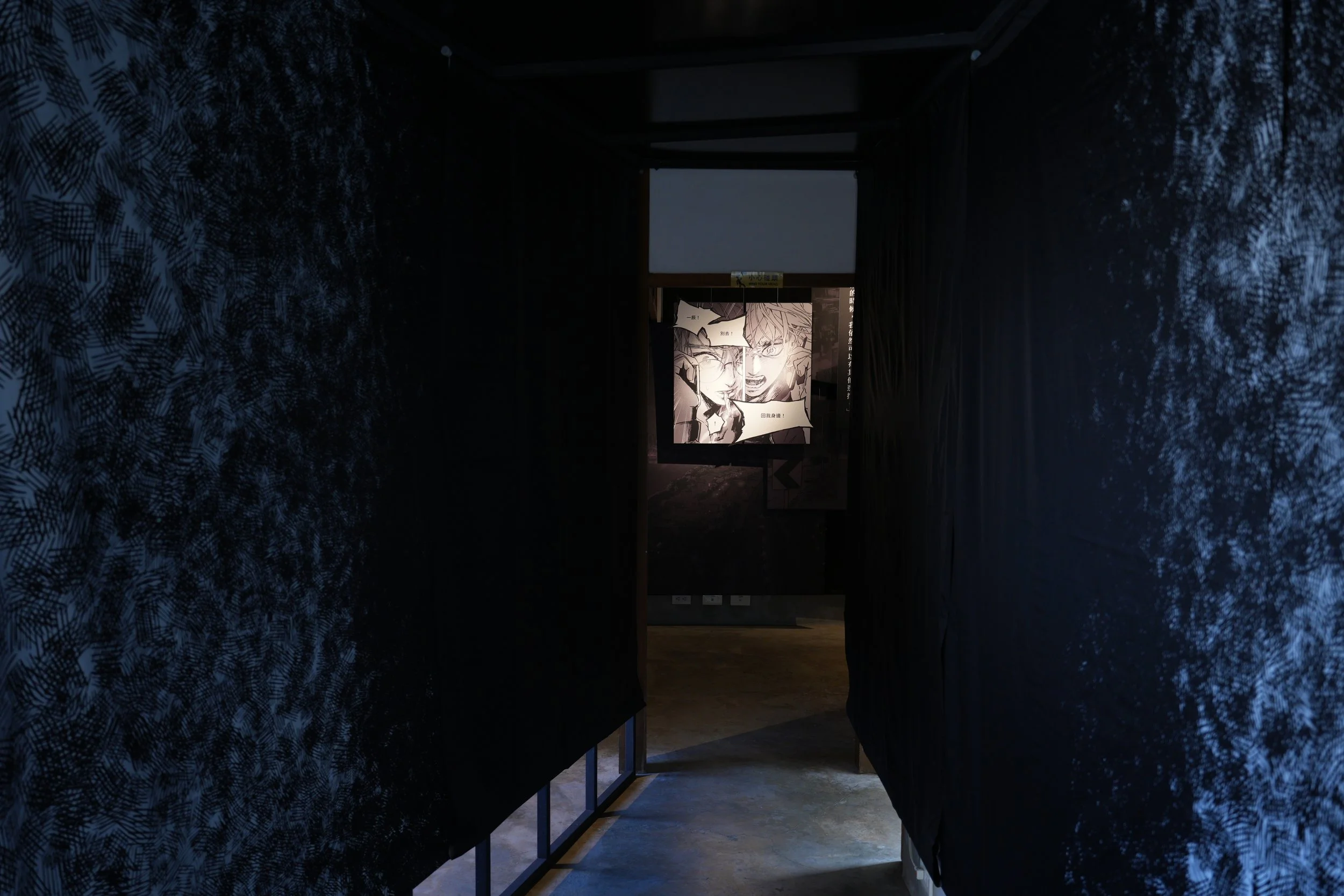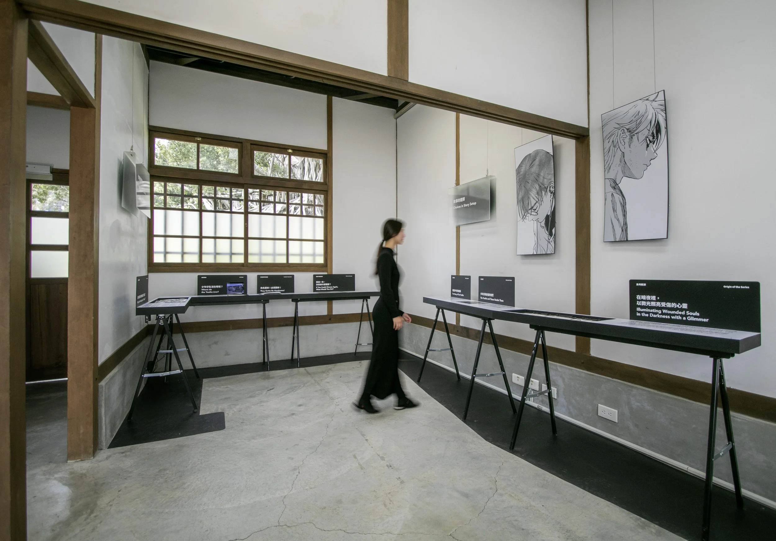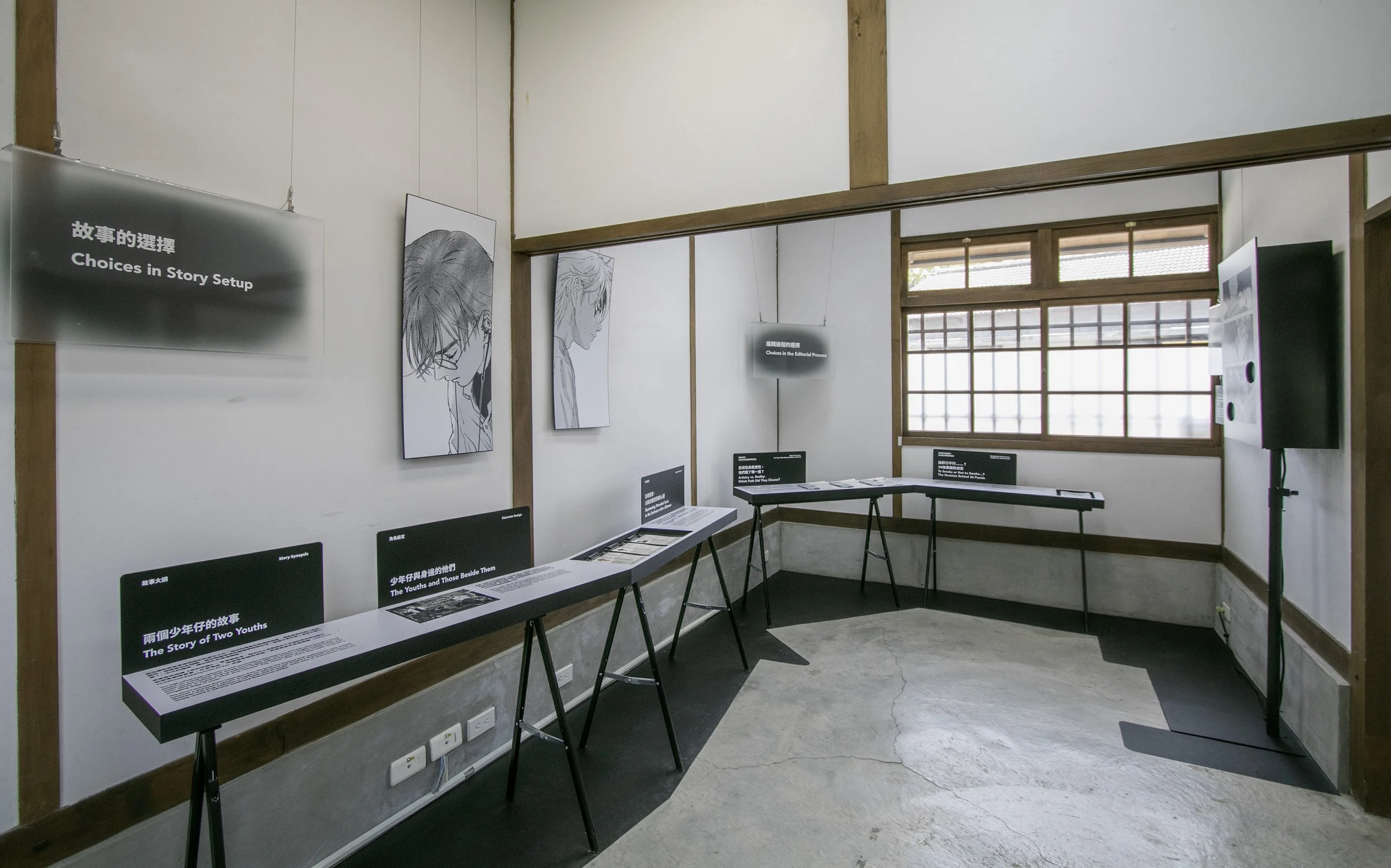 空間設計上,我們透過暗室與明室的空間的切換來緊扣主題。進入展場後的「暗室」,是漫畫宇宙所呈現的混亂壓抑的日常,我們展示故事中出現的物件,既增加帶入感也是送給作品粉絲的彩蛋,讓每個人都可以駐足細品當中的深意。穿越過道後的「明室」,是創作的後台,透過故事大綱、角色與分鏡、學者監修與編輯思考,我們看見漫畫的成形過程,也看見各種選擇承載著哪些訊息。