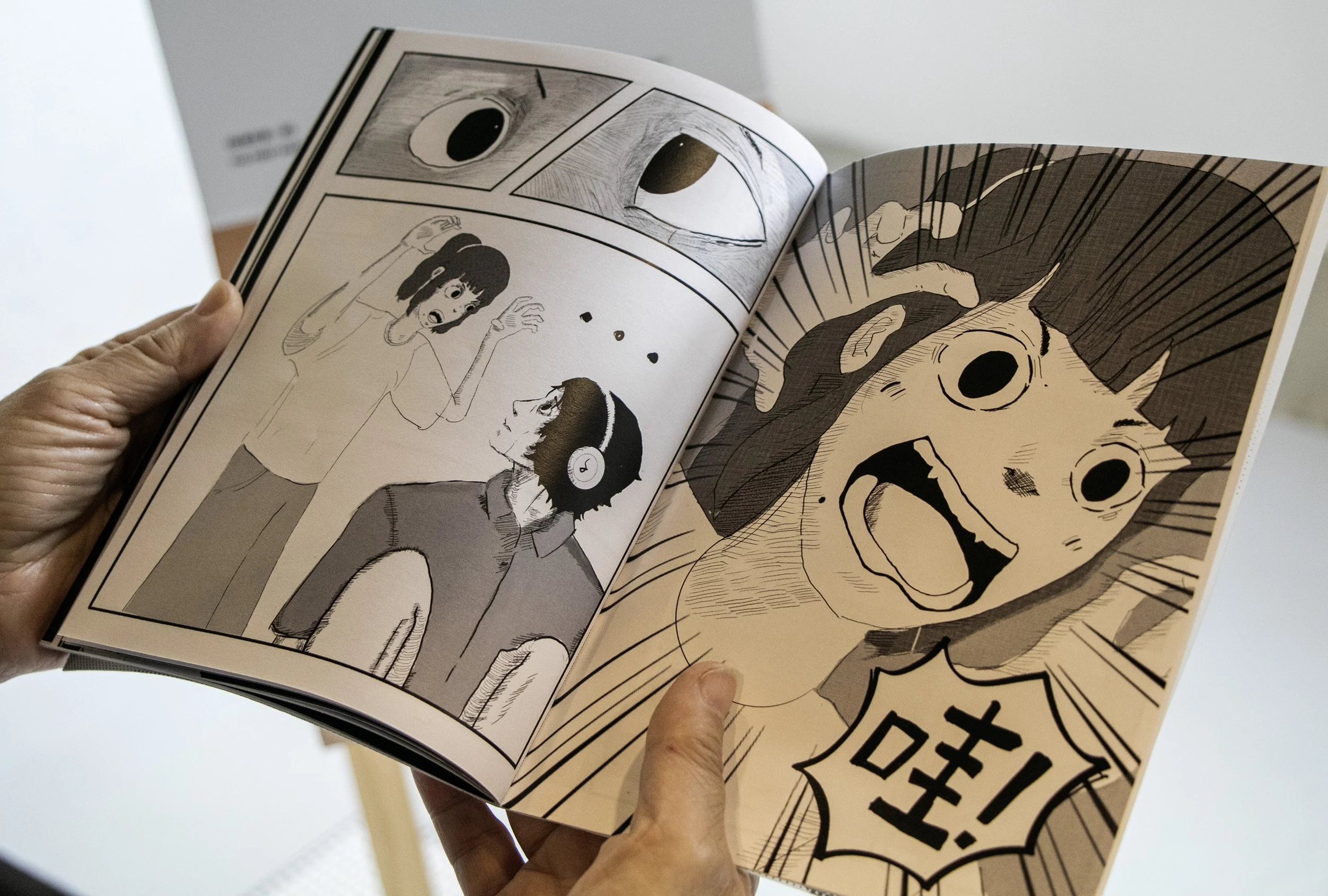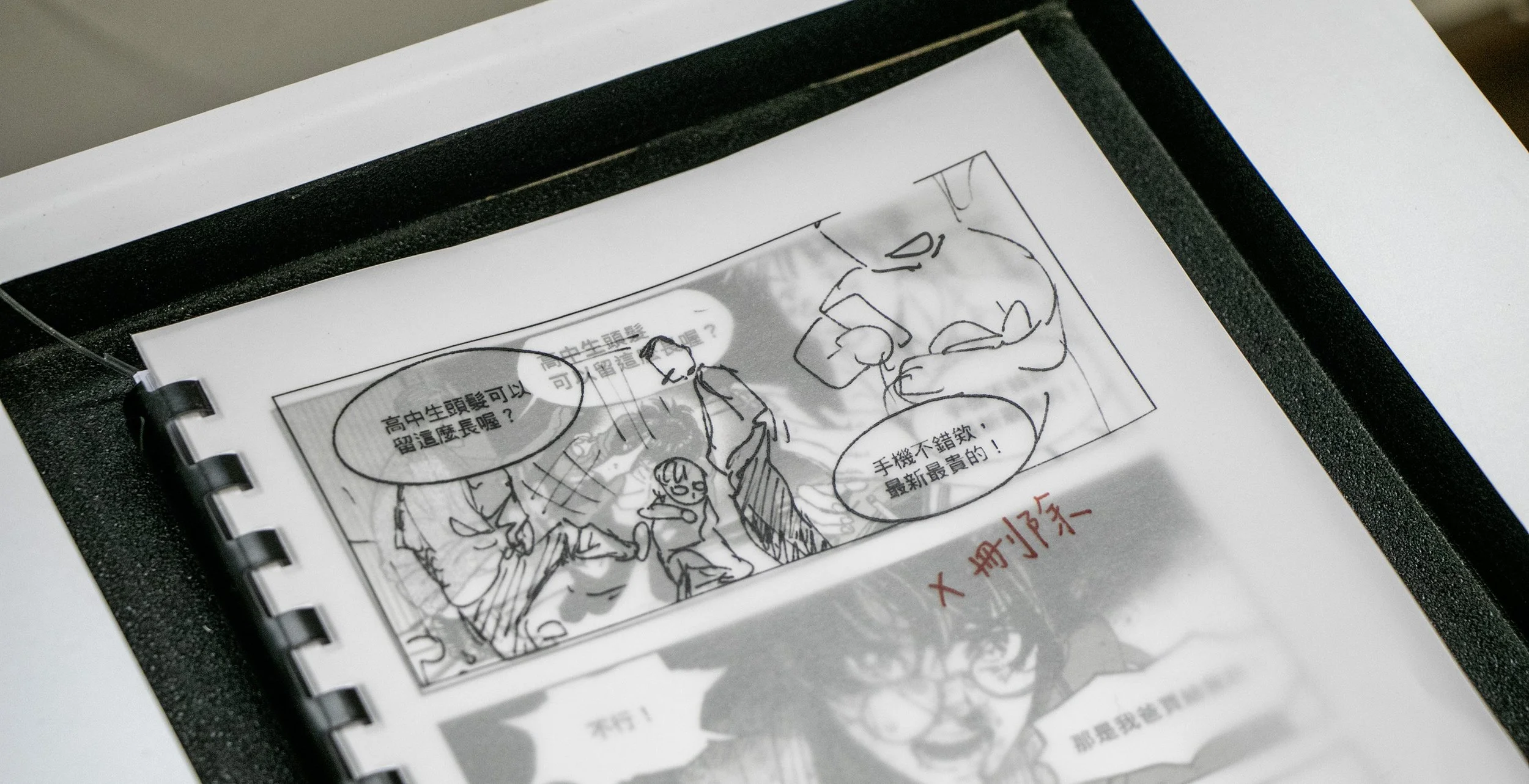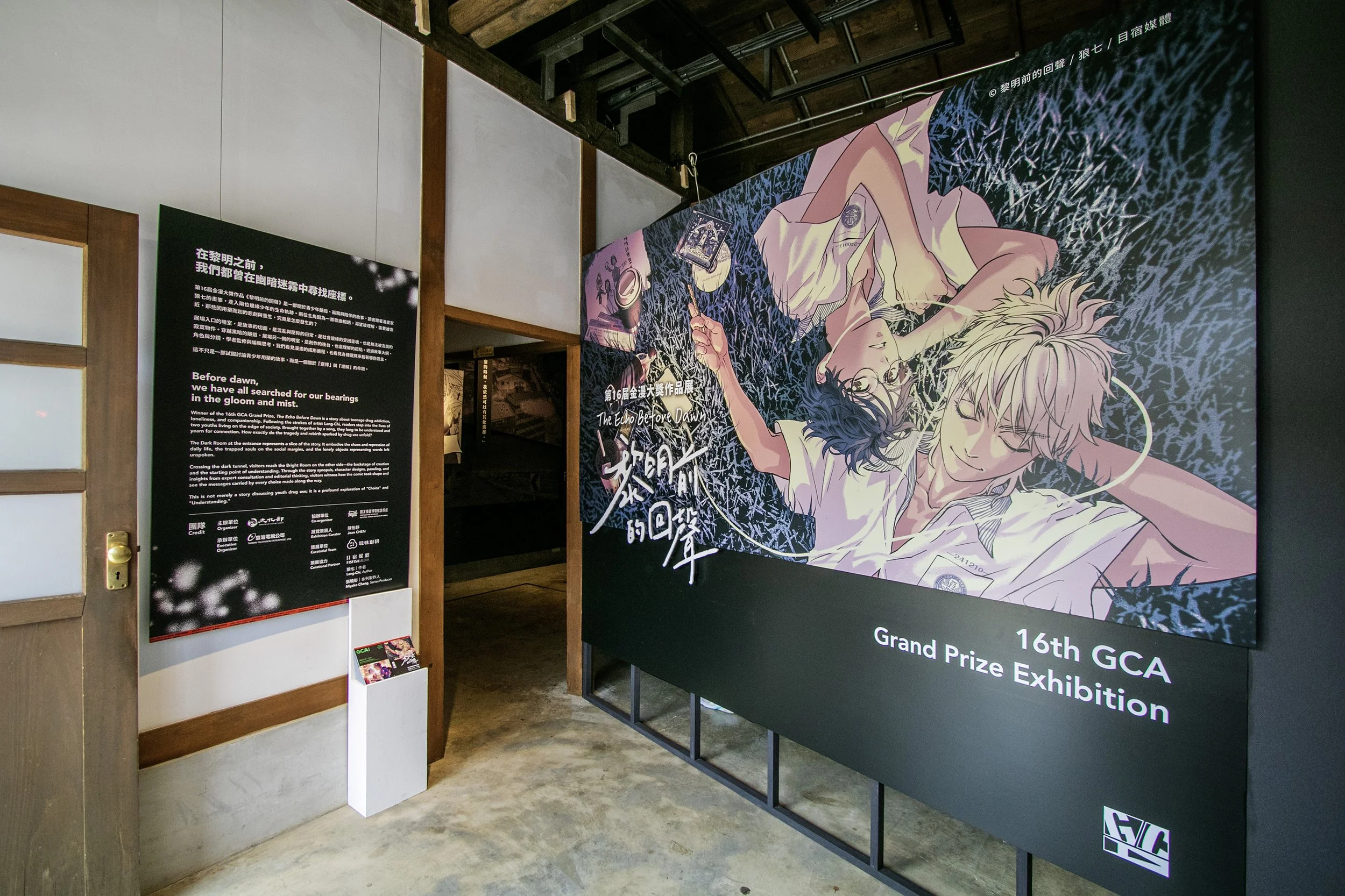 第16屆金漫大獎作品《黎明前的回聲》是一部關於青少年藥癮、孤獨與陪伴的故事,讀者跟著漫畫家狼七的畫筆,走入兩位邊緣少年的生命軌跡。本次策展我們以「走進漫畫宇宙,但看見創作後台」為設計主軸,引領觀眾在「選擇」與「理解」的生命主題中穿行。