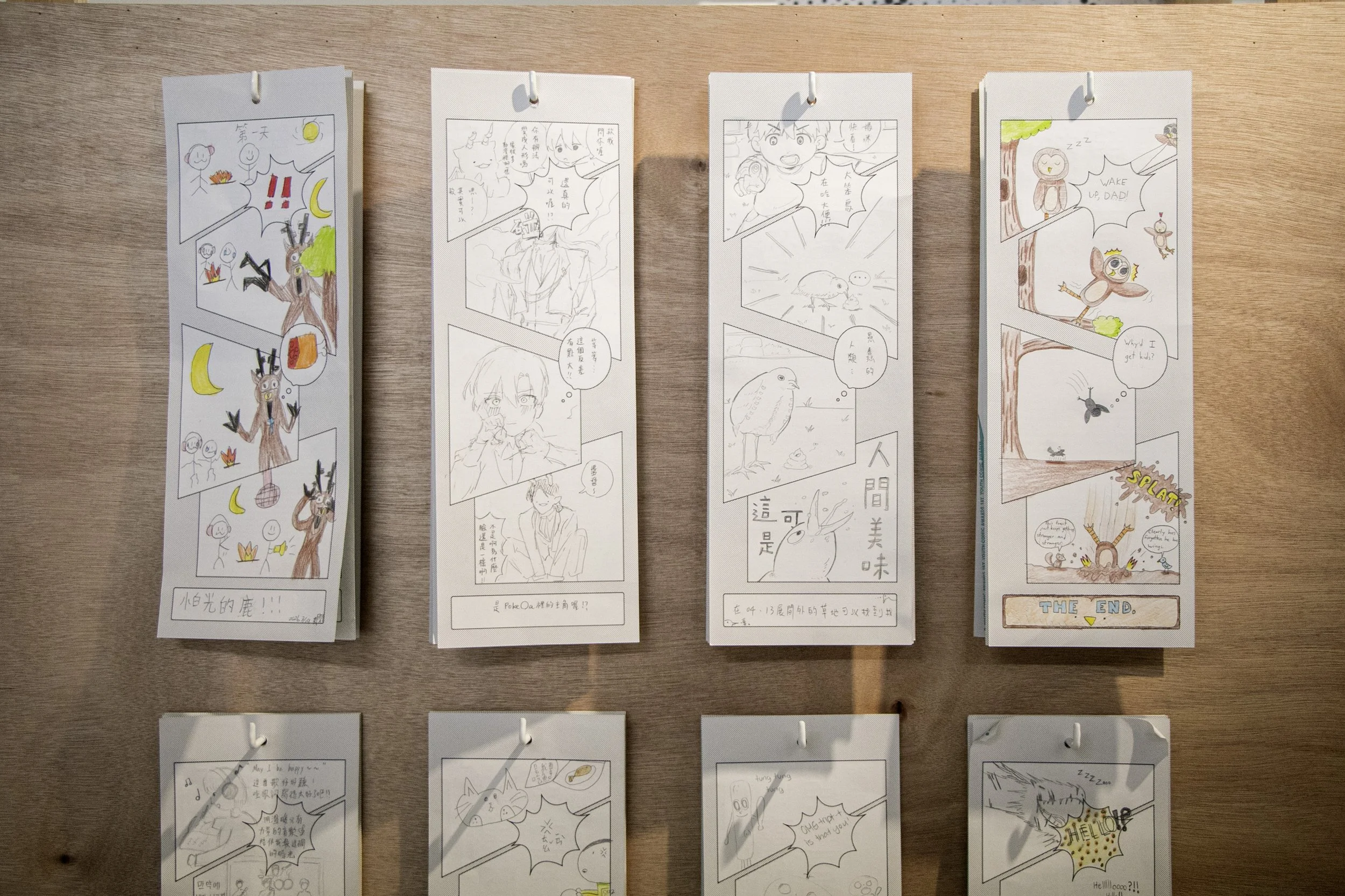 這本漫畫的獨特之處,在於作者與編輯前期大量的田野調查以及不同領域專家的投入。因此,我們將創作切分為「作者的選擇」、「故事的選擇」、「編輯的選擇」三個面向。無論是透過描圖紙的前後比對,或是還原與專家的來回討論,甚至是田調場景如何轉化為漫畫分鏡,觀眾都能在此空間一窺端倪。